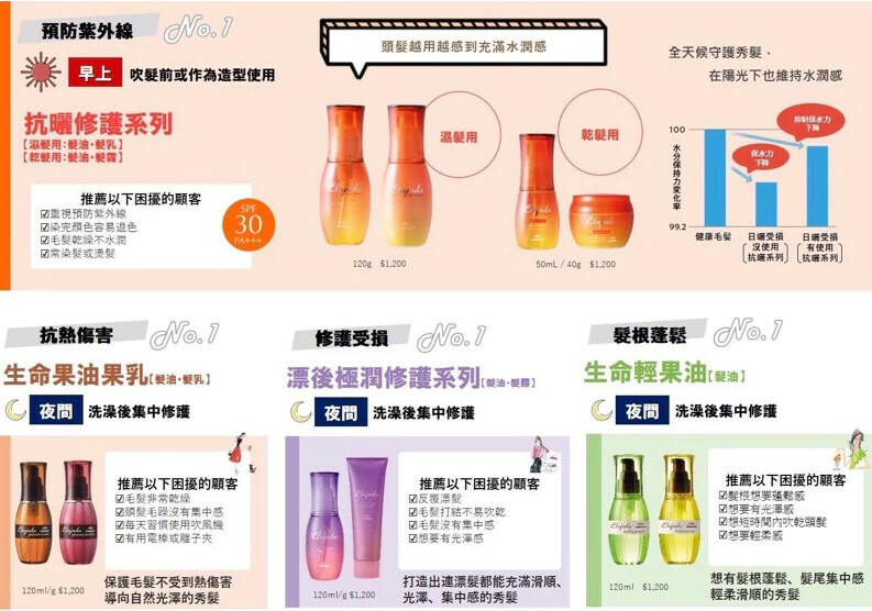 無油膩感的髮油系列,只需藉由手繞吹即可改善造型上的困擾。