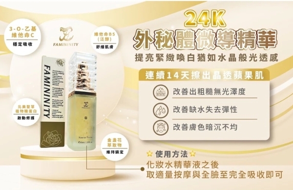 使用方法:化妝水精華液之後去適量按摩與全臉至完全吸收即可