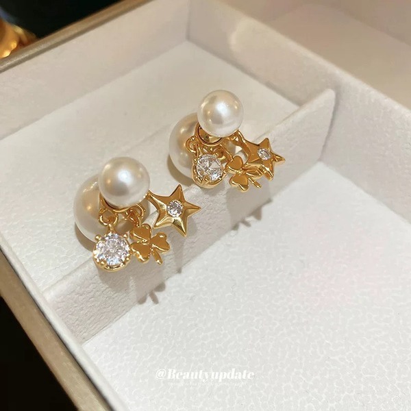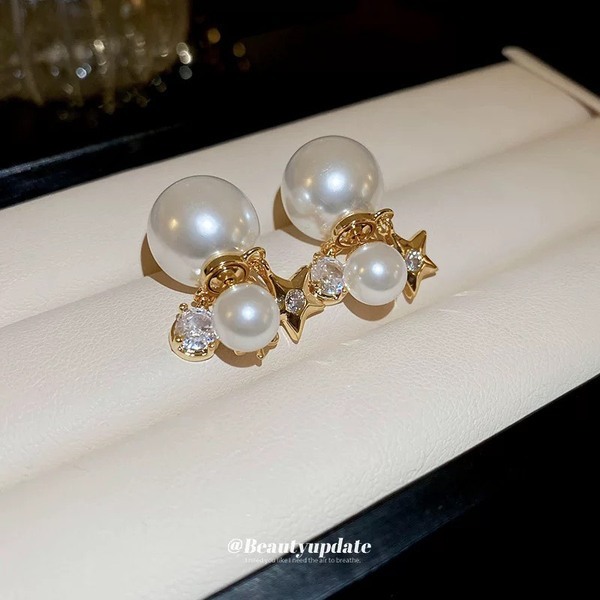 925銀針珍珠星星耳環