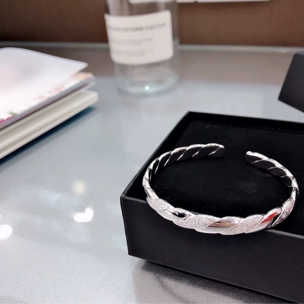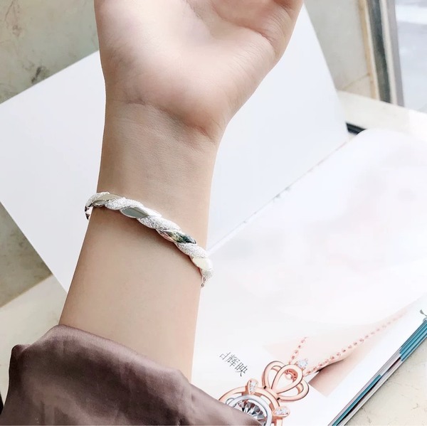 999純銀麻花扭紋開口手鐲
