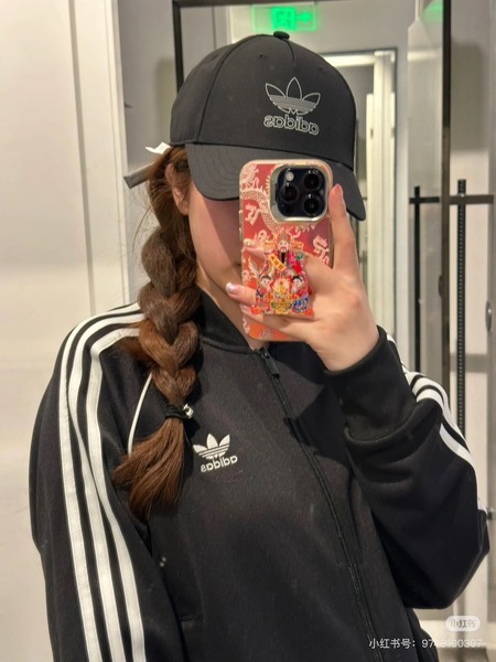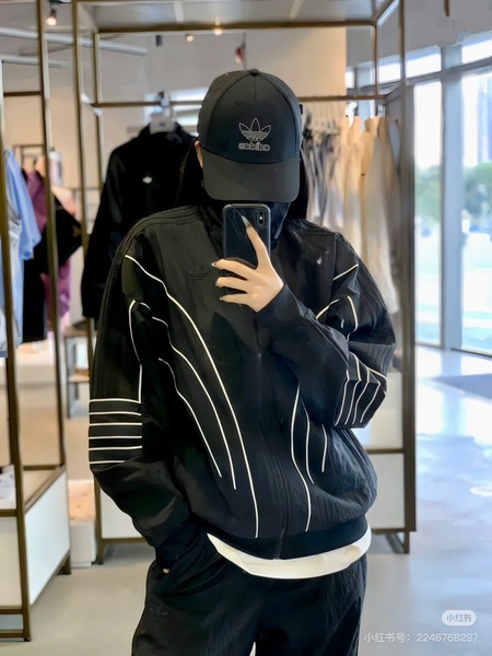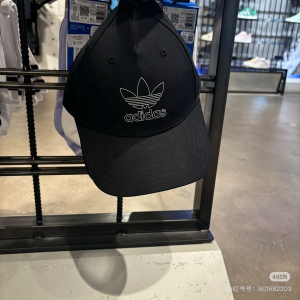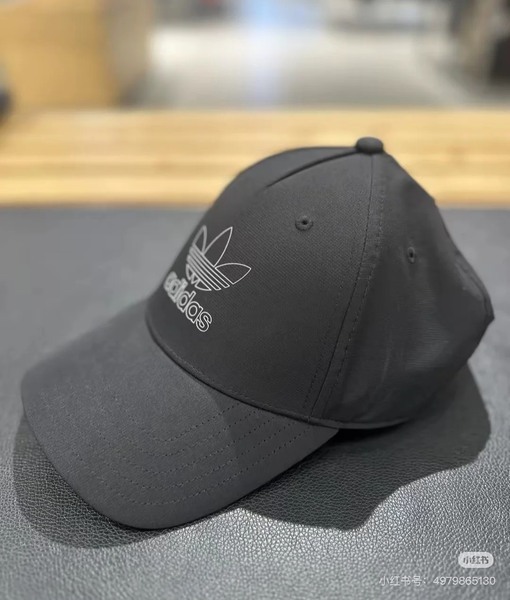 ADIDAS黑色線條三葉草棒球帽