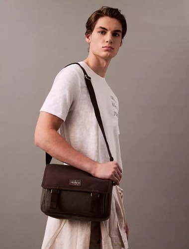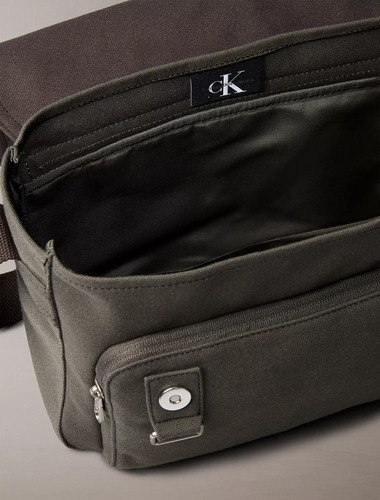 Calvin Klein CK布標Logo大容量帆布郵差包