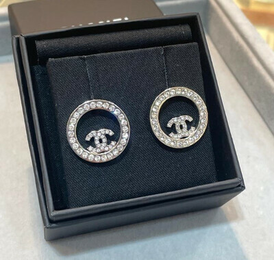 CHANEL 經典雙C LOGO圓形縷空鑲鑽耳環