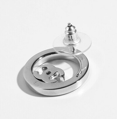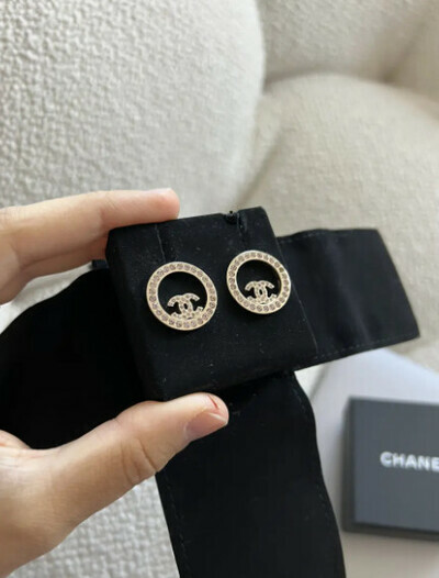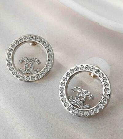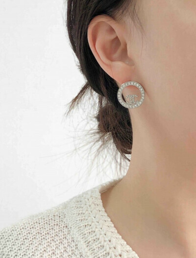 CHANEL 香奈兒 經典雙C LOGO圓形縷空鑲鑽耳環