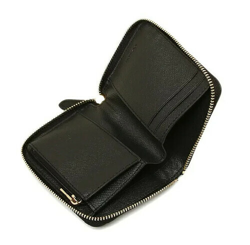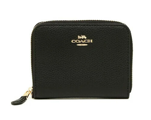 COACH ㄇ型拉鍊素面荔枝皮革短夾