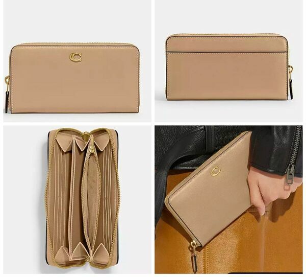 Coach 專櫃 奶茶真皮拉鍊長夾