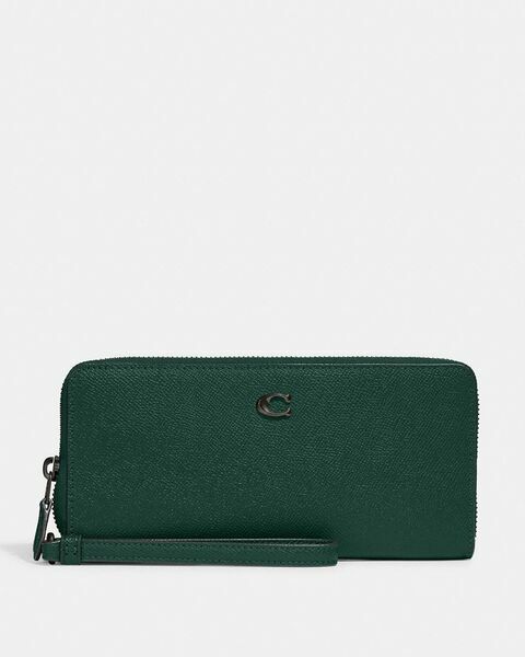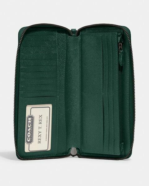 Coach專櫃款 大C logo 祖母綠真皮多夾層手掛長夾