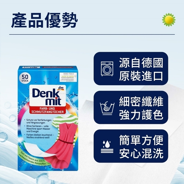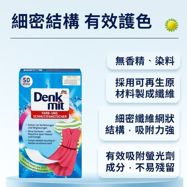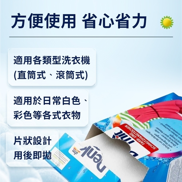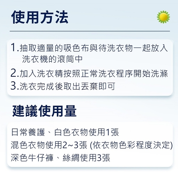 如有深色衣服或容易掉色之衣物一起清洗時,請使用2~3片防染片。