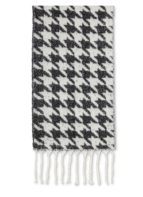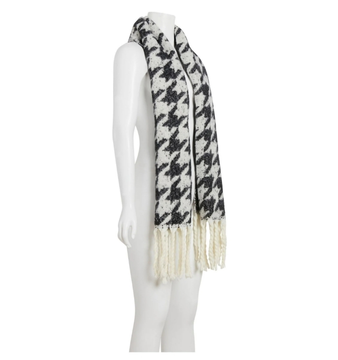 Dkny 超大圍巾採用大膽的千鳥格設計和酷炫的流蘇飾邊