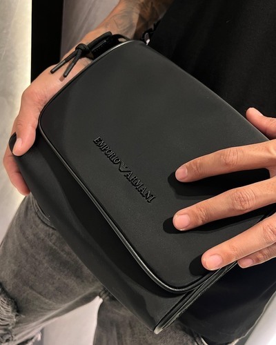 EMPORIO ARMANI 黑色尼龍防水斜背包