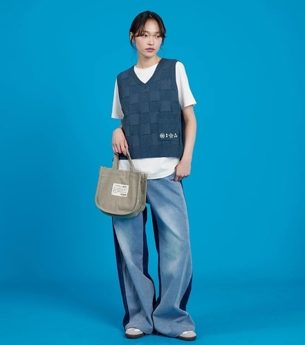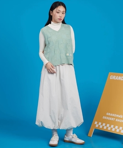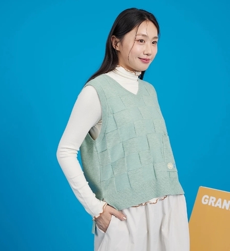 Gozo綠豆椪摩斯密碼棋盤格毛衣背心