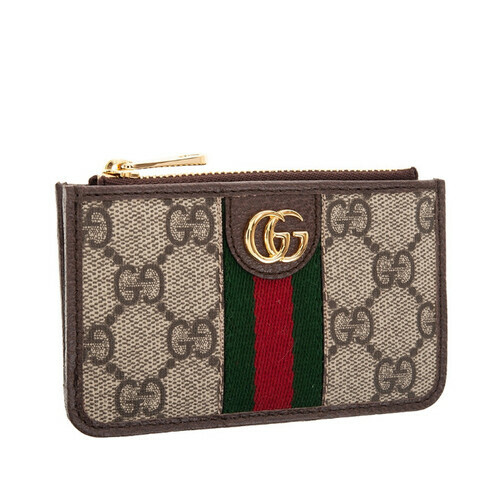 GUCCI Ophidia印花帆布牛皮飾邊拉鍊卡夾零錢包