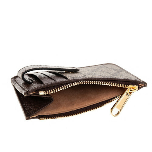 GUCCI  Ophidia GG印花帆布牛皮飾邊拉鍊卡夾零錢包