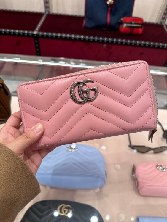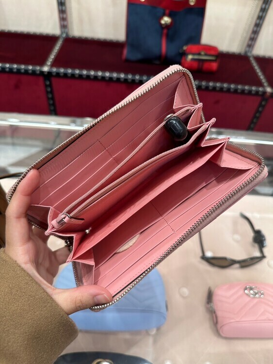 GUCCI Marmont 銀金屬雙G 拉鍊長夾(粉)
