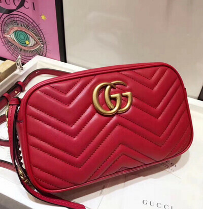 G U C C I Marmont牛皮山字車紋拉鍊肩背包