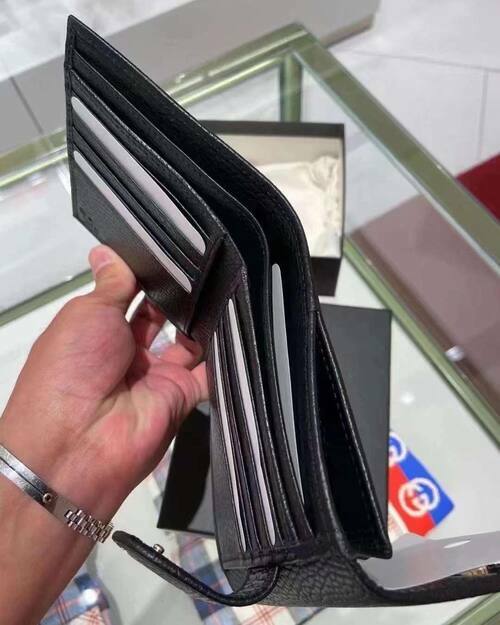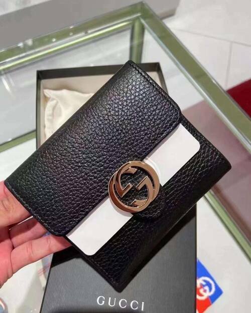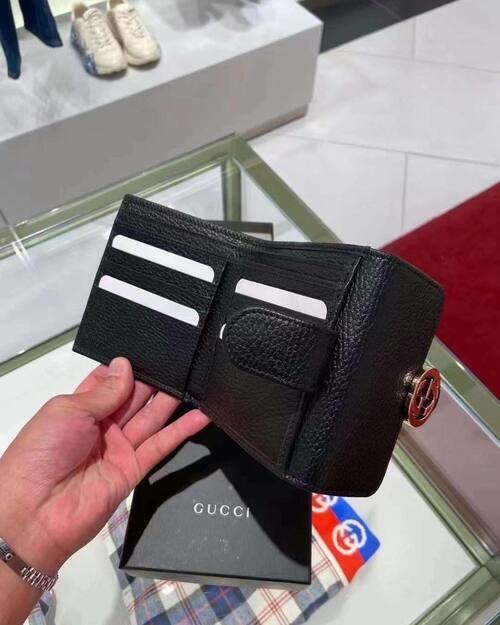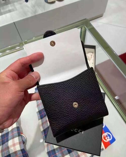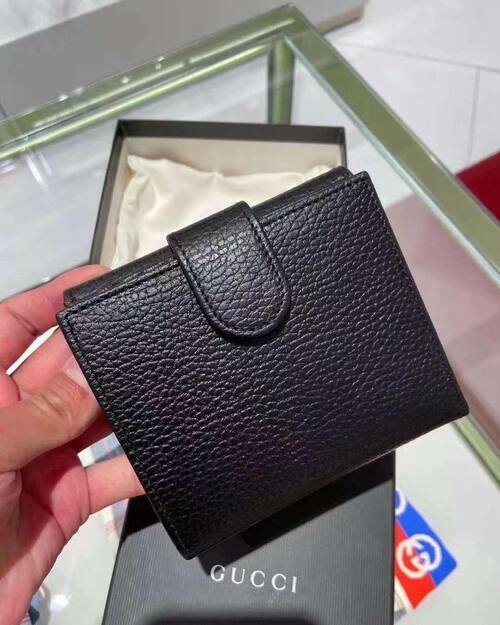 GUCCI 金屬LOGO+牛皮材質,釦式雙面開口