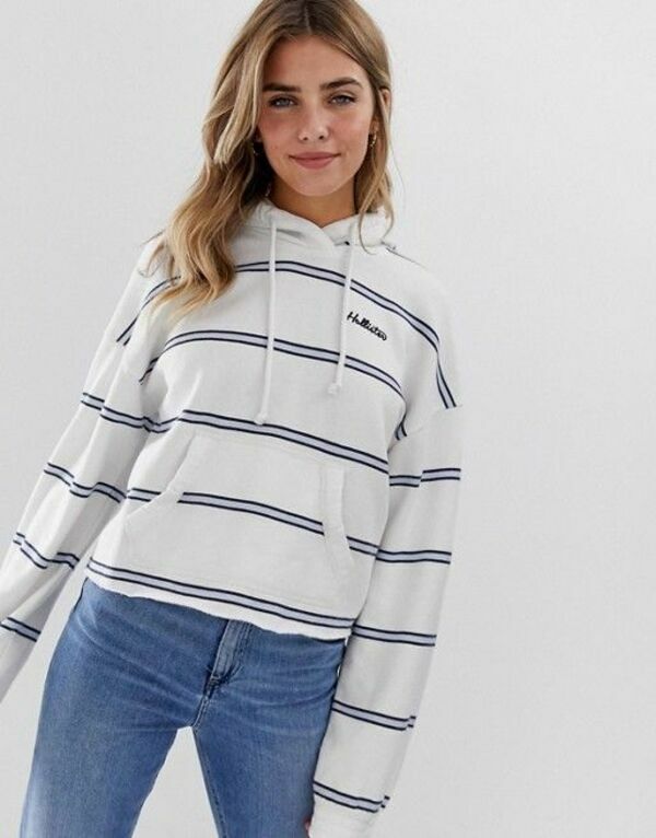 HOLLISTER女款短版線條帽T