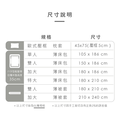 床包可包覆床墊高度:35公分內
