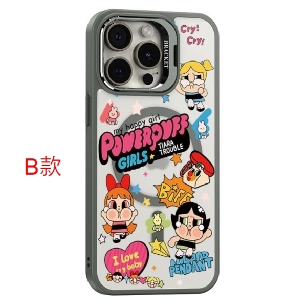 IPHONE 哭娃飛天小女警金屬鏡頭支架磁吸手機殼