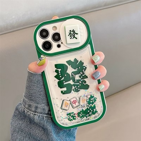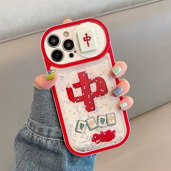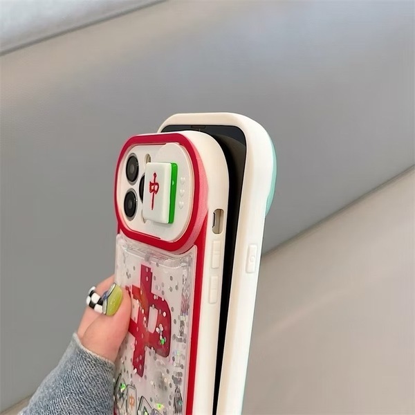 IPHONE 推拉窗滑蓋鏡頭液體流沙麻將手機殼