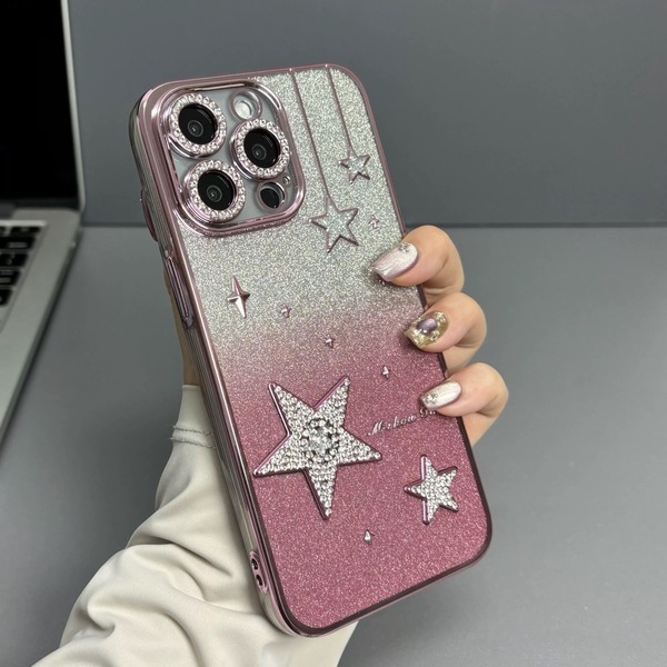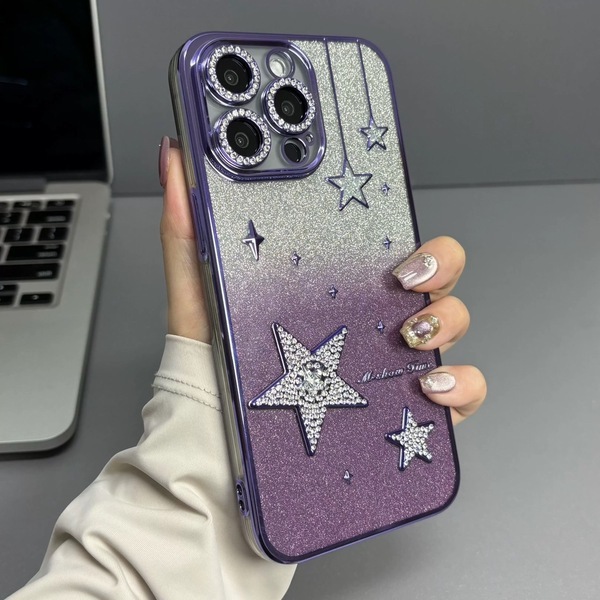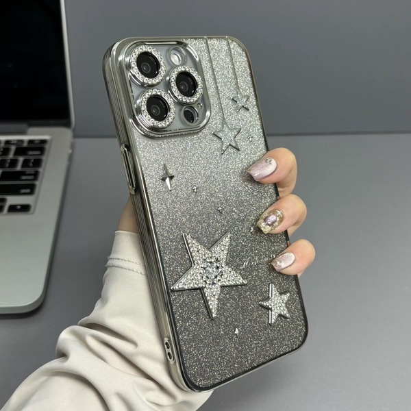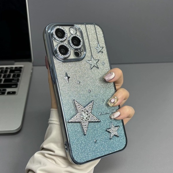 電鍍閃粉+鑲鑽流星+水鑽鏡頭
