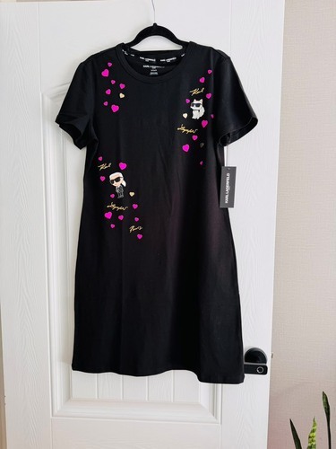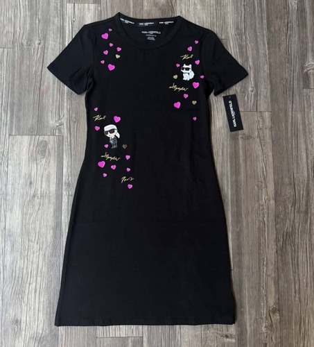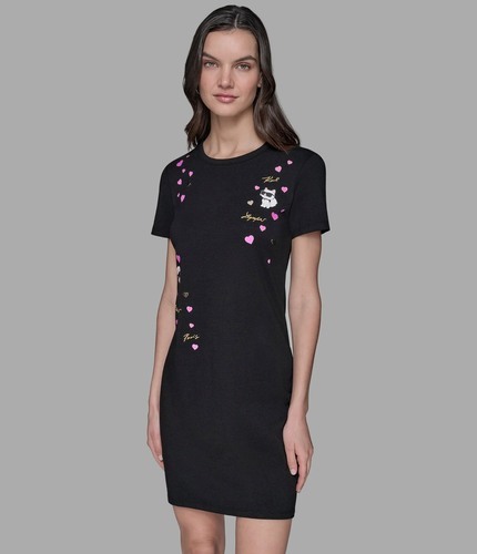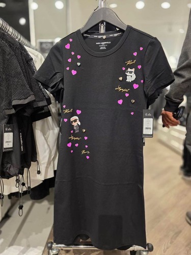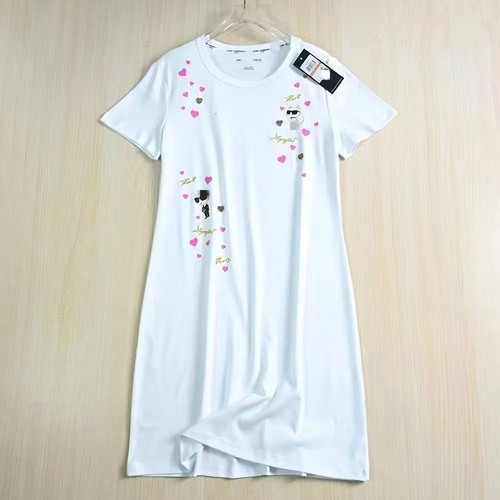 Karl lagerfeld 棉質膠印刺繡草字母圓領緊身短袖洋裝