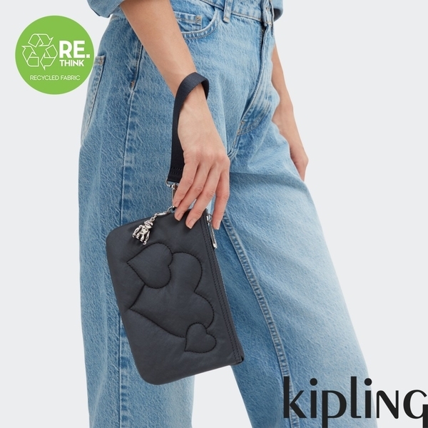 Kipling 暗夜黑心型絎縫造型多層手拿包