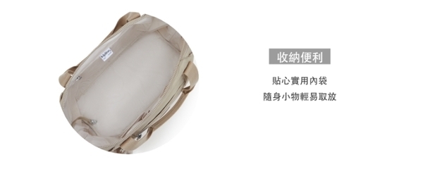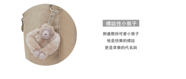 附有可拆卸背帶、可愛的Kipling鑰匙圈與兩個前側口袋。包內含拉鍊式與開放式口袋、筆槽。