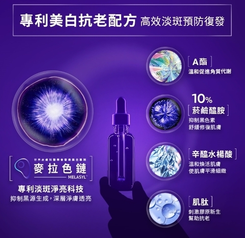 美白專利 麥拉色鏈MELASYL, 1 周有感淡斑,87%頑固斑淡化