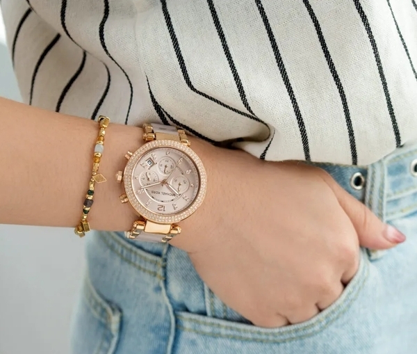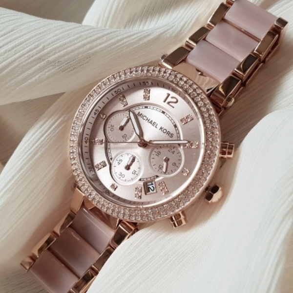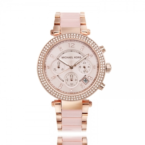 Michael Kors 晶鑽三眼計時錶-粉x雙色/38mm