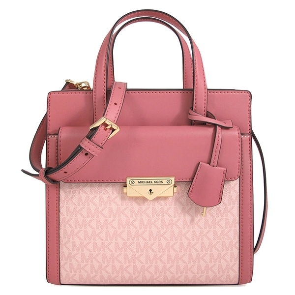 MICHAEL KORS 金色壓扣鎖頭前口袋肩斜雙色兩用包