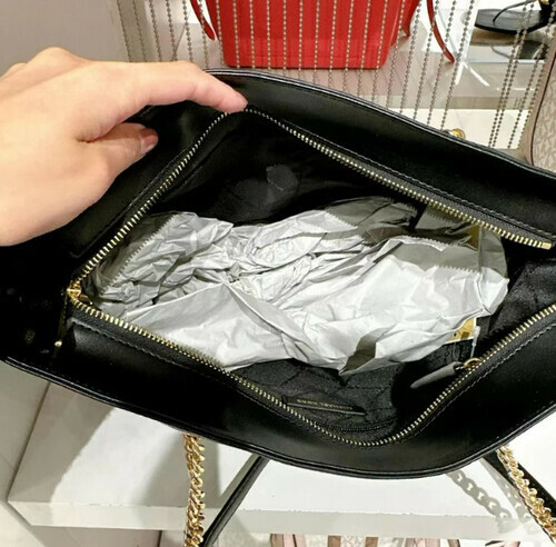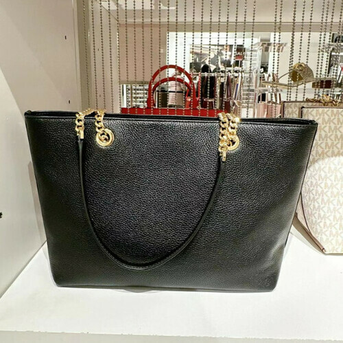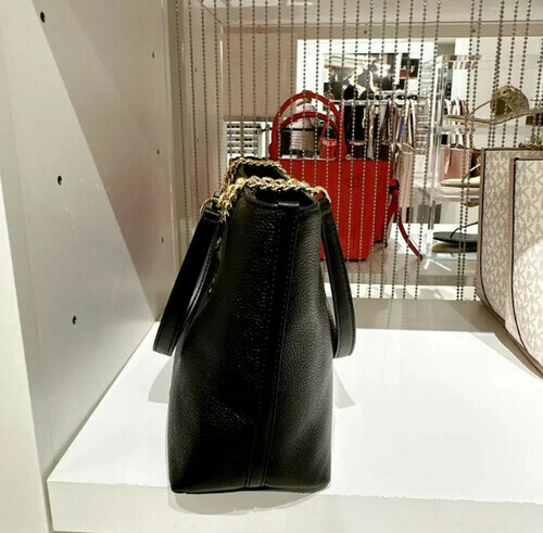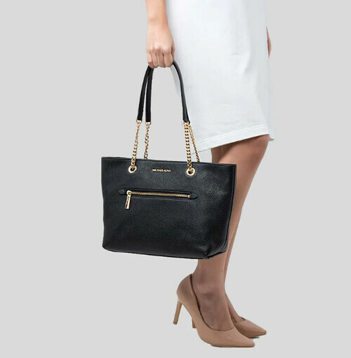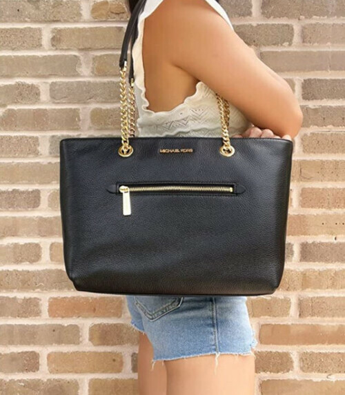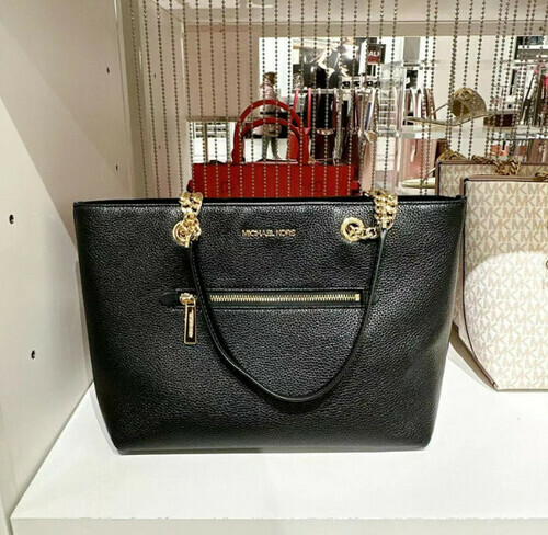 Michael kors 前拉鍊口袋黑荔枝紋皮金鍊拉鍊托特包