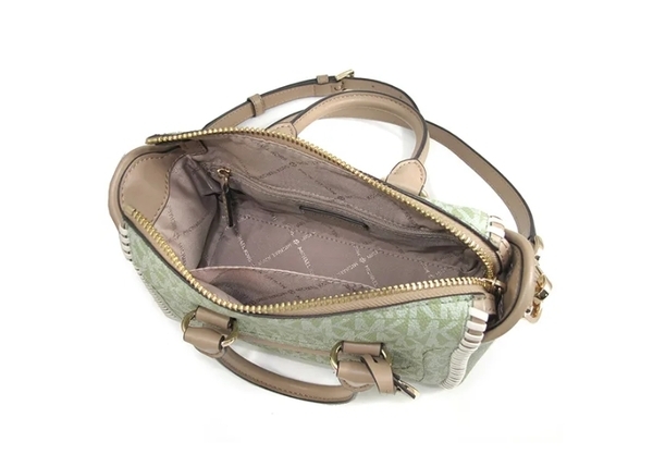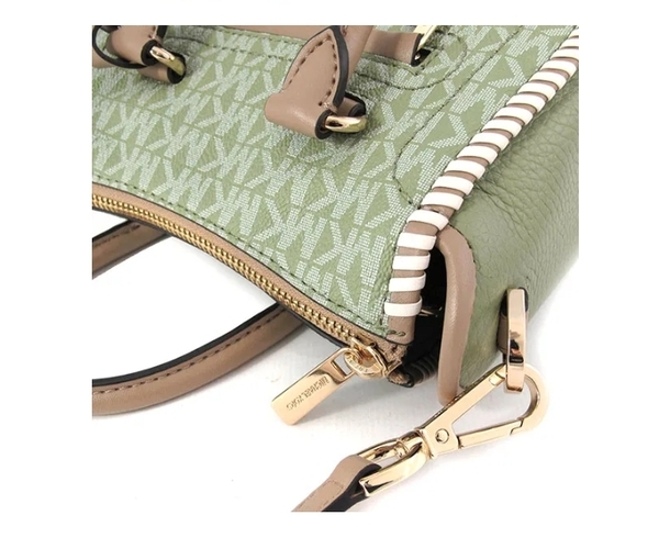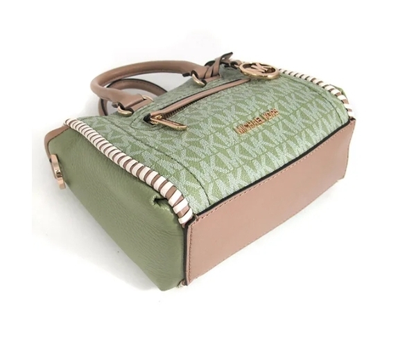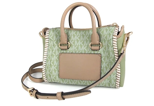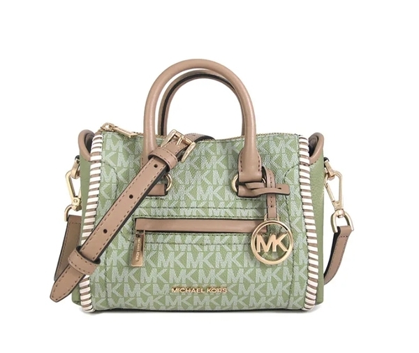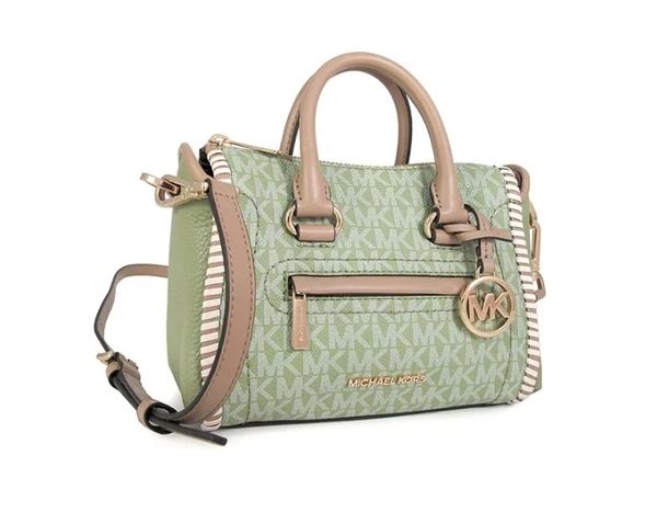 Michael Kors 鼠尾草綠小款吊牌編織邊老花手提機車斜背包