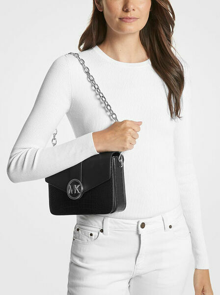 Michael Kors鱷魚壓紋拼皮雙背帶肩肩斜背兩用包
