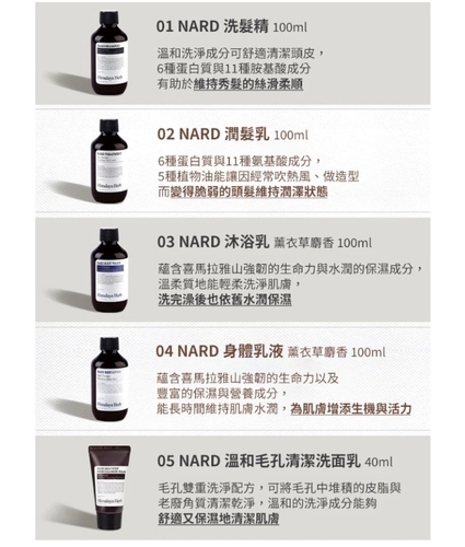 ✔️內含經典洗髮精、經典護髮乳、薰衣草麝香沐浴乳、薰衣草麝香身體乳、溫和毛孔清潔洗面乳各一瓶。