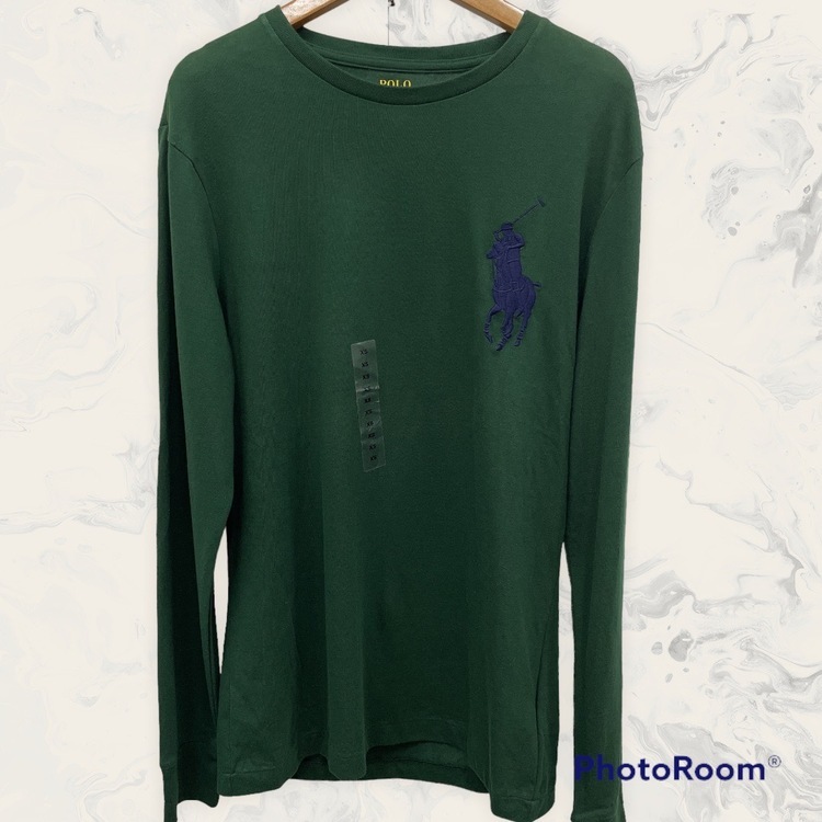 Polo Ralph Lauren男款深綠色藍大馬長袖