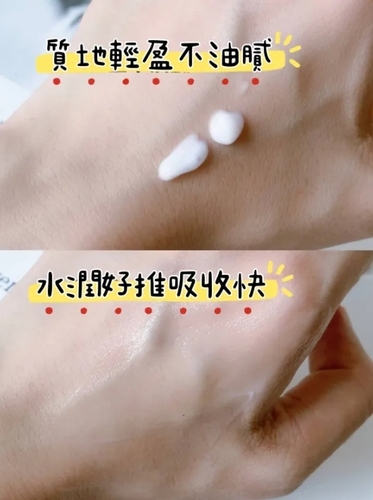 輕盈水感質地,快速吸收,保濕不厚重、不黏膩