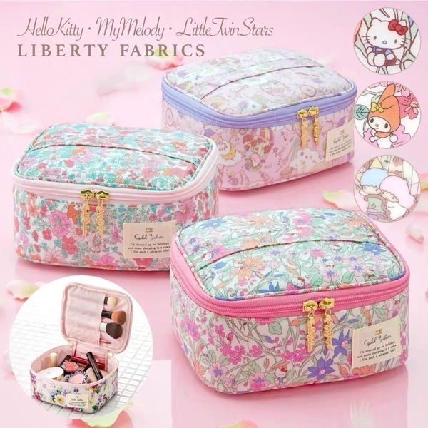 三麗鷗聯名款Hello Kitty美樂蒂花卉拉鍊防水化妝包