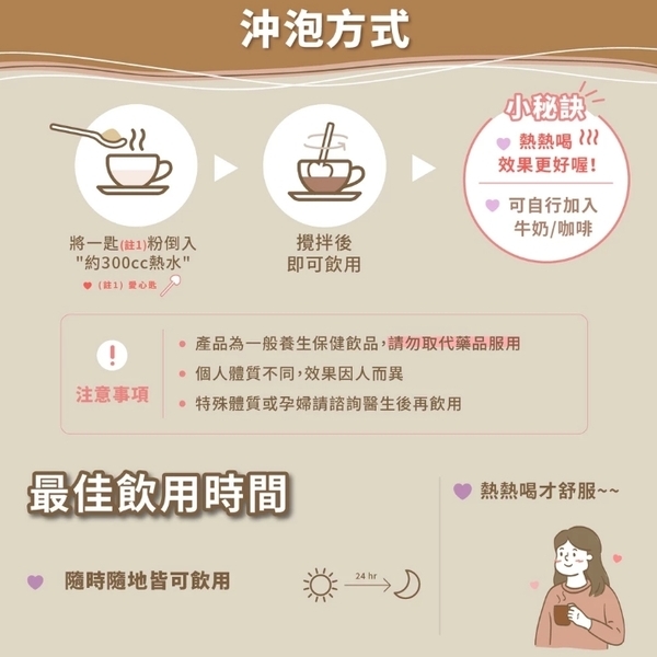 配上低溫研磨老薑粉,保留完整薑纖維,低糖輕負擔。