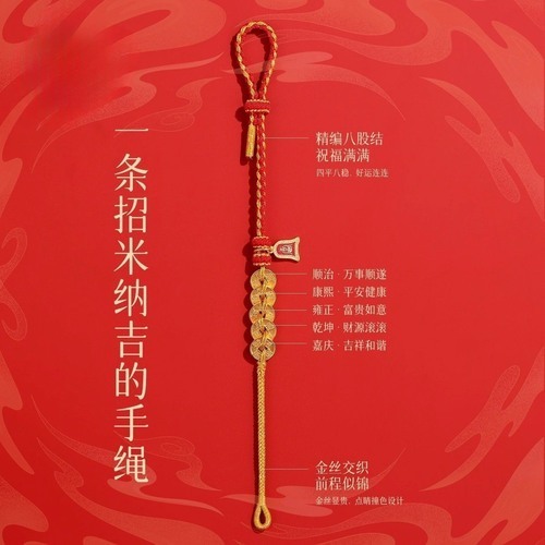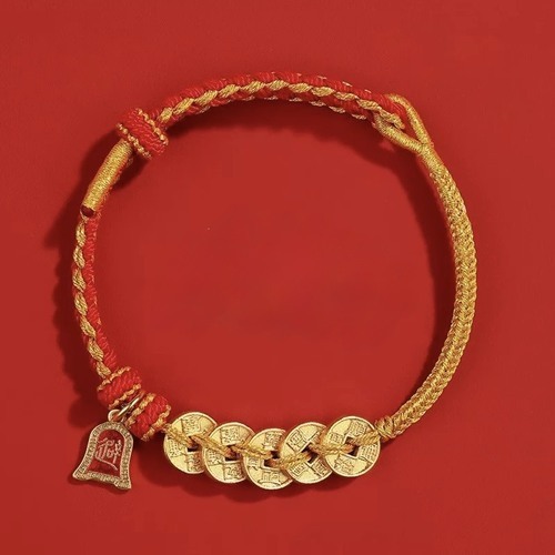 五帝錢手繩 寓意「五福臨門、平安富貴」,