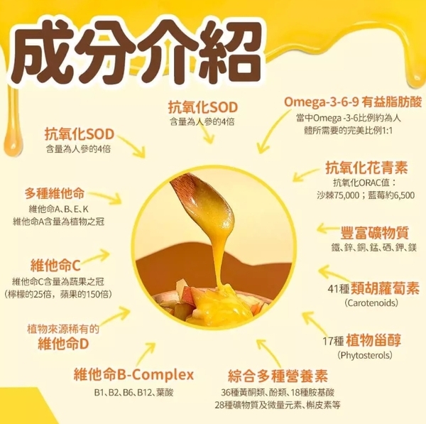 沙棘內富含多種維生素,包含常見的維生素A、D、E、K、維生素B群,