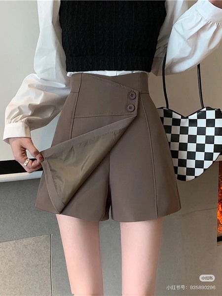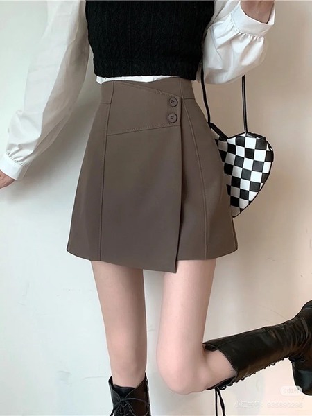 假兩件式前裙後褲高腰寬版西裝A字裙