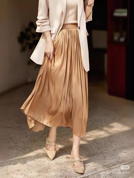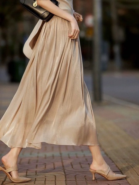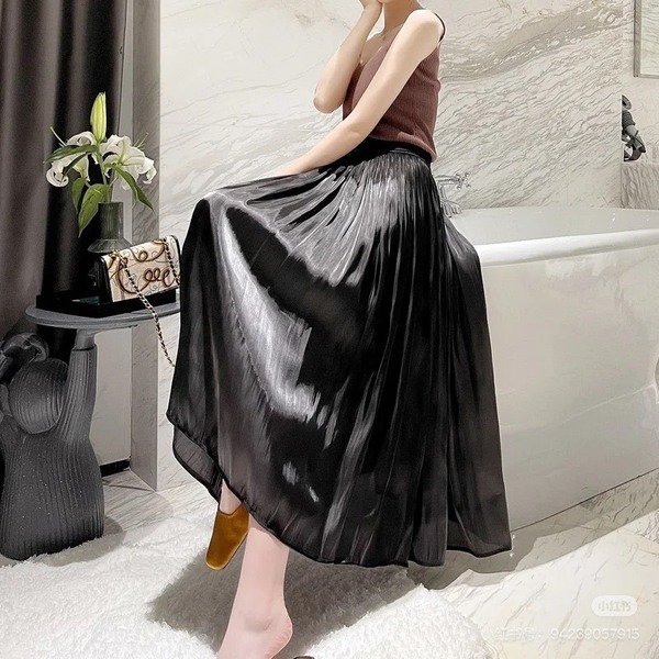 光感垂墜飄逸歐根紗顯瘦中長款A字裙