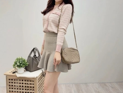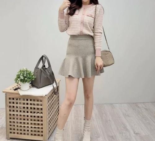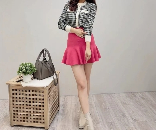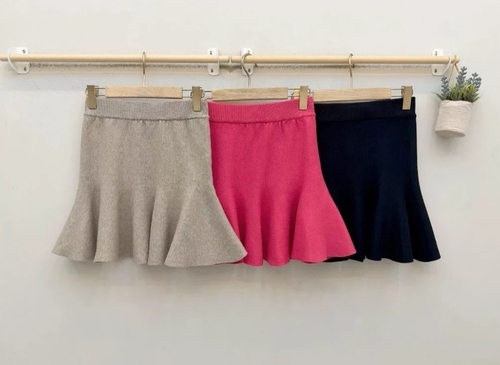 高腰滾圈荷葉襬針織小短裙