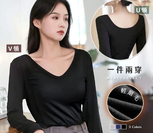 雙領口設計 一面是U領 一面是V領 一件可兩穿 非常划算吧