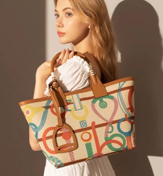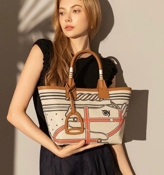 大容量圖騰印花帆布托特包