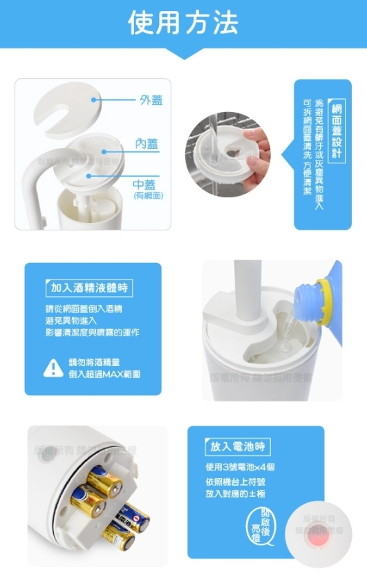 ❤ 酒精雜質過濾網設計,提高酒精消毒機耐用。