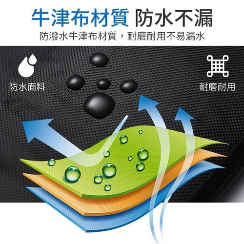 外層➡防水牛津布+密封拉鍊,雙重保護、雨水不漏出