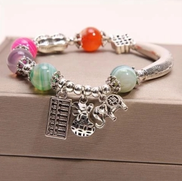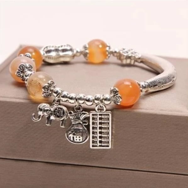 招財貓大象錢袋吊墜天然水晶瑪瑙轉運珠手環