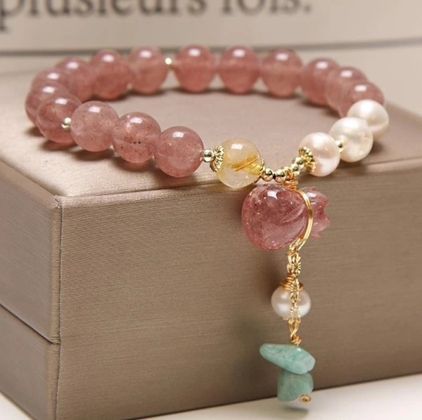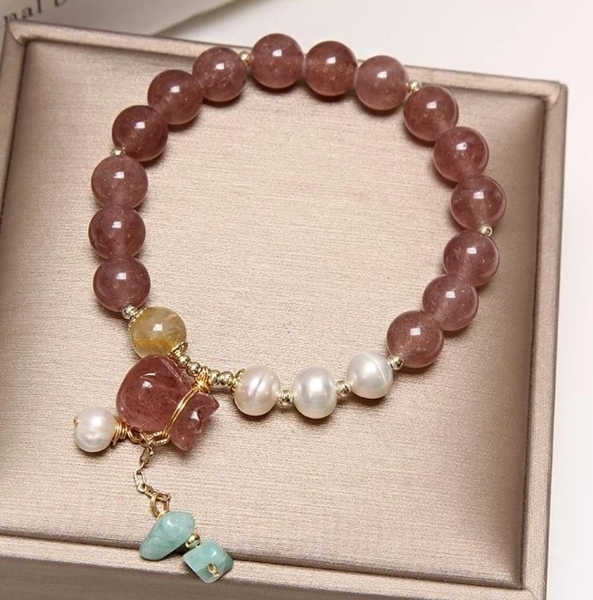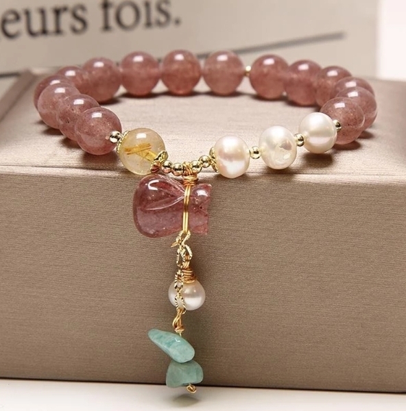 招財轉運 草莓晶錢袋吊墜手鍊